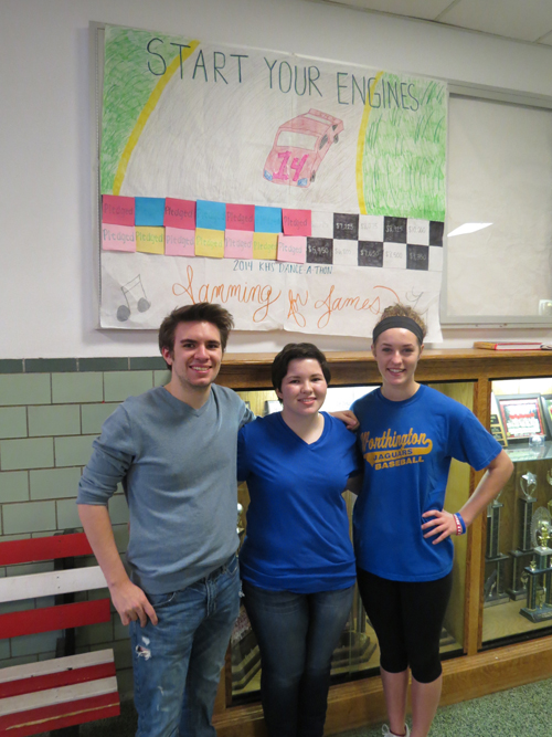 Kittanning Senior High Health Teacher Cindi Lindahl’s three-year-old son, James, is the inspiration behind this year’s student council dance-a-thon next week. Student leaders (L-R) Erick Shiring, Roxanne Crissman and Gabby Cravener have attended the annual event before, but hope to raise the most next weekend.