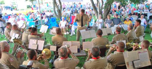 Director leads the Kittanning Firemen's Band to the enjoyment of the crowd spread across the lawn of the YMCA in Kittanning as the Fort Armstrong Folk Festival begins its 39th year..