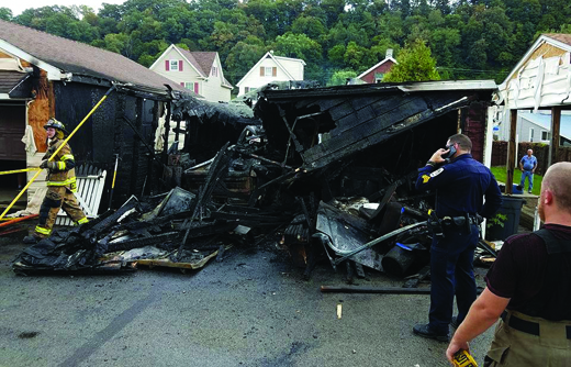 A fire Friday destroyed a garage behind Ford City Beer. Sources say the owner was welding when the fire broke out. (photo by Patrick Shuster)