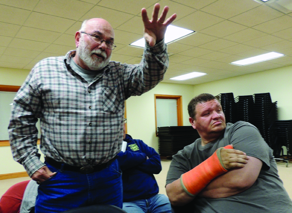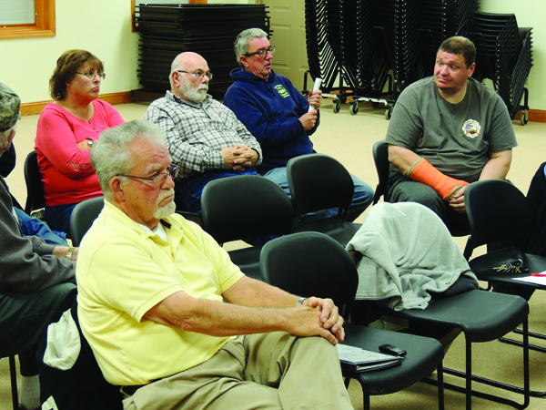 Community Leader George Duckstein (front foreground), Manor Township Fire Chief Chad Evans (second row right), and Resident Larry Cecchi (back row center) had a three-way verbal brawl last night over the fire department’s handling of recent issues.