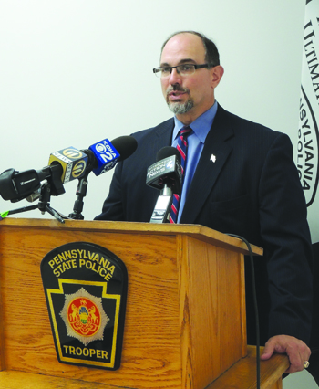 District Attorney Scott Andreassi is photographed at one of his many news conferences held over the past 20 years. He will leave his office at the end of this year. (KP 2017 File Photo)