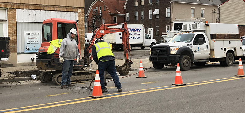 People’s Gas crews worked from mid-afternoon until well into the evening to repair a gas leak across from Armstrong Beer Distributors on South Jefferson Street in downtown Kittanning. Traffic was down to one-lane while repairs were being made.