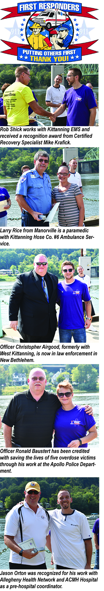 The Armstrong Indiana Clarion Drug and Alcohol Commission held an event at Kittanning Riverfront Park on Sunday afternoon honoring First Responders who have helped save the lives of overdose victims.