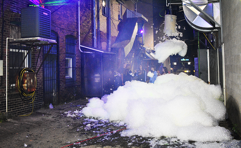 It was mild on the scary side, but delighted participants who enjoyed getting slimed and foamed as they ventured through a maze that was set up in the alley around Templeton Way.