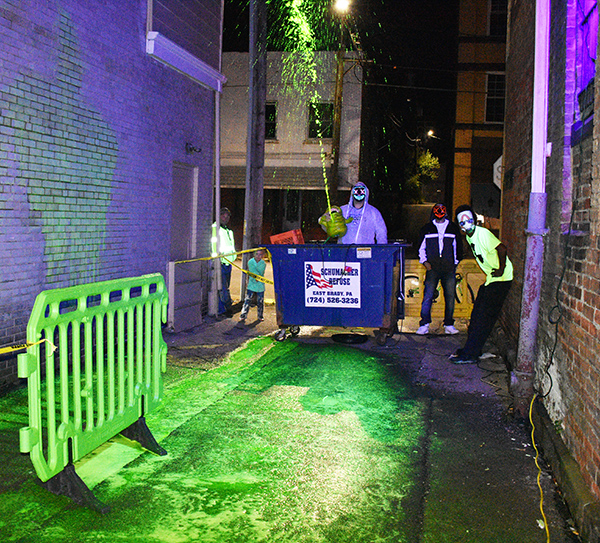 Green slime was squirted as participants walked through the alley maze of the Toxic Zombie Walk on Saturday night in Kittanning.
